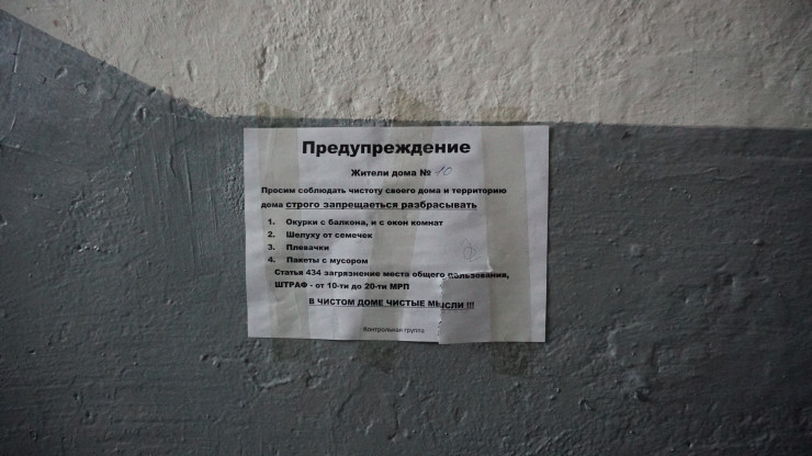 А еще у себя в подъезде она расклеила объявления, посредством которых призывает жителей соблюдать порядок.