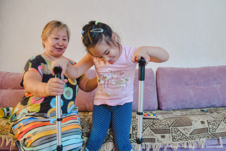 С тех пор Анель прошла много различных курсов, ей сделали операцию на глаза (у нее была частичная атрофия зрительного нерва). А теперь, когда дочь освоила "крабы", Гаухар планирует закрепить этот результат, и усилиями специалистов сделать так, чтобы девочка пошла уже самостоятельно.