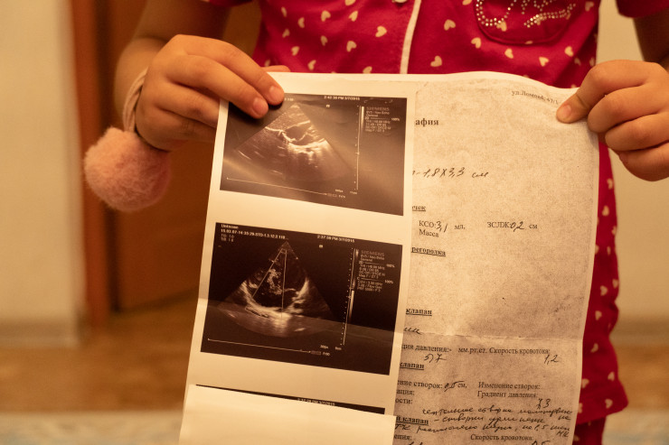 "В последний год меня особенно беспокоит ее состояние, бывает, она истерически плачет, сильно синеет и как будто задыхается. Я ее еле как успокаиваю, спрашиваю: что с тобой? Она говорит: мама, просто обними меня. Я ее обнимаю, разговариваем, вроде успокаивается. Или ей страшно становится, или что, я не знаю. Врачи нам объяснили, что это вроде как паническая атака, потому что сердце больное. Мы постоянно обследуемся, врачи говорят, пускай сидит, ей нельзя бегать, прыгать, нельзя нервничать. Но как объяснишь это ребенку?" - недоумевает мать девочки Тогжан.