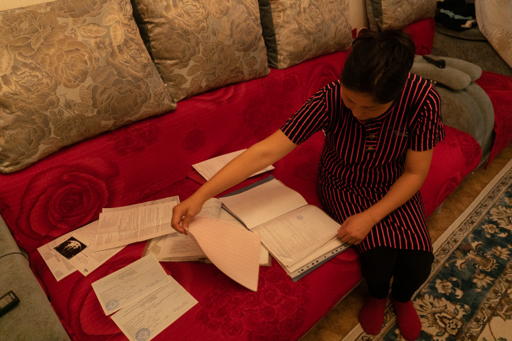 Тамирис держит в руках результаты медицинского обследования, девочке приходится регулярно посещать врачей.