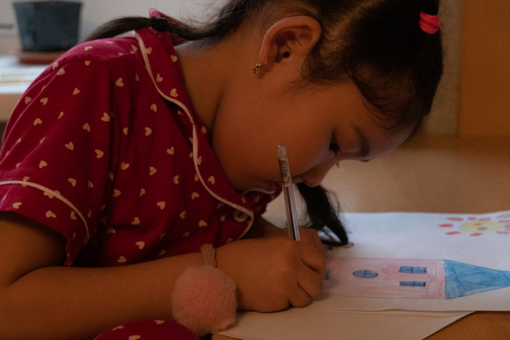 Тамирис постоянно рисует, это вообще ее самое любимое занятие. Даже у Деда Мороза на Новый год она попросила побольше разноцветных маркеров и листов для рисования.