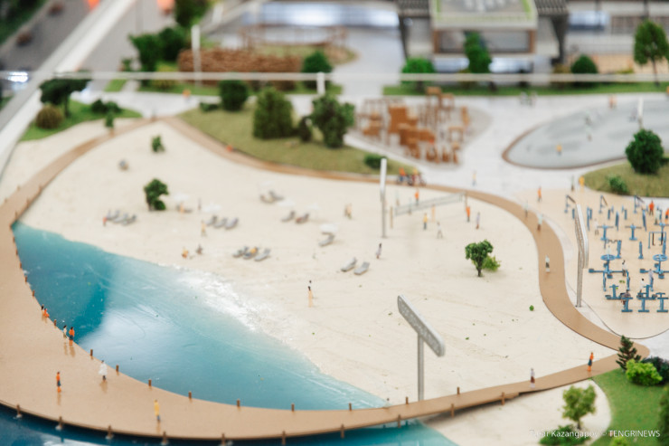 В кабинете у акима макет новых объектов в Жезказгане. Один из интересных - прогулочный пирс на водохранилище. А еще планируется строительство бассейна. В городе есть бассейн, но он не работает уже много лет. Его признали аварийным.