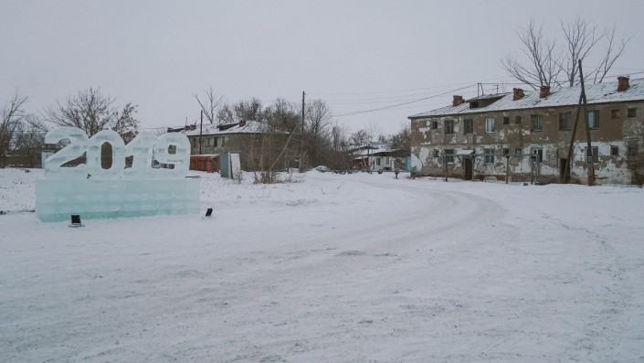 Если заглянуть в нолик этой цифры, то можно увидеть деревянное сооружение - это уличный туалет, которым пользуются жители двух ветхих двухэтажек, стоящих поблизости.