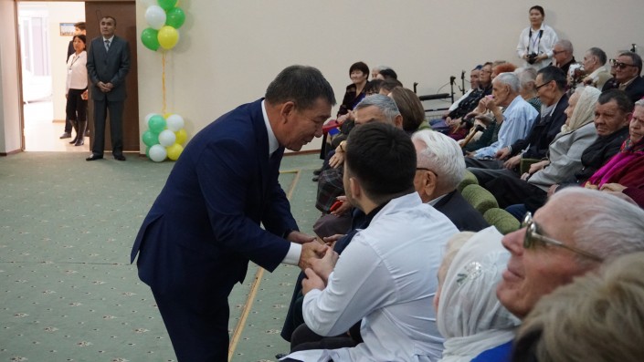 На нижнем фото - его бывший шеф, экс-руководитель Центра социального обслуживания Бапишев. Этого человека пенсионеры сегодня встречали овациями, все-таки он с ними провел очень много времени и стал для них почти как родной.