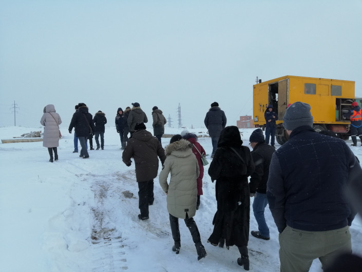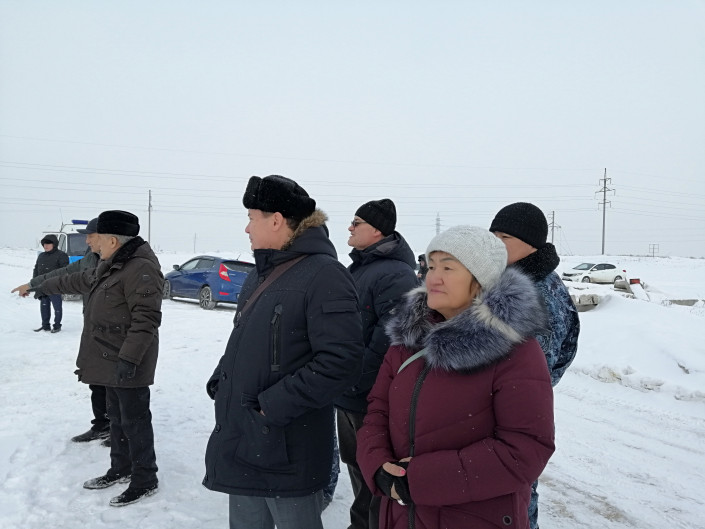 Снегоуборочная машина расчищает дорогу к злополучному колодцу, чтобы все участники процесса вместе с судьей смогли подойти ближе. За происходящим наблюдала и корреспондент Tengrinews.kz.