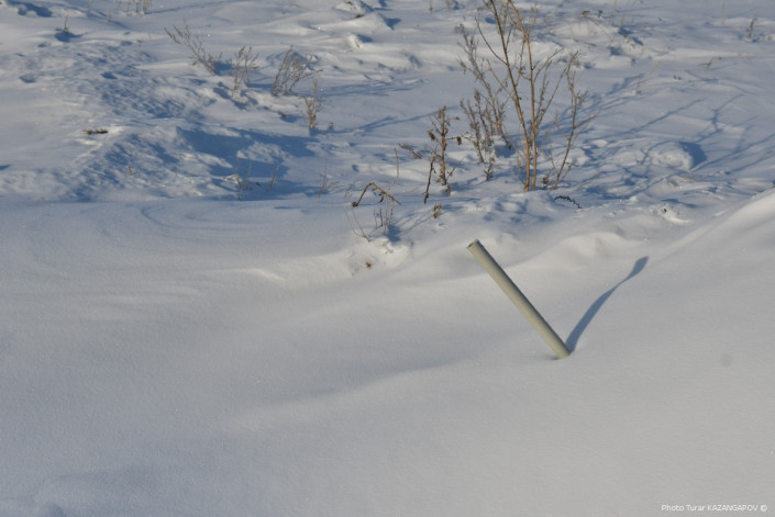 "Мы взяли пластиковые трубы длиной в 2,5 метра и начали осматривать эту степь. Шли как по минному полю, по пояс в снегу и натыкались на эти открытые колодцы", - вспоминает волонтер Бақытбек Бидахметов.