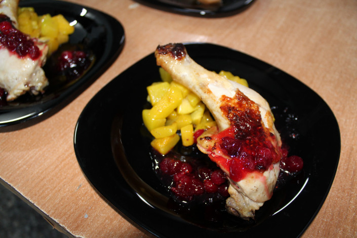 "Сегодня мы будем готовить утиное филе с гарниром из пряной груши с гвоздикой. Утиное филе, предварительно обжарив, мы запечем в духовке. А также у нас будет куриная ножка с тыквой, приправленной мускатным орехом и сахаром. На десерт приготовим шоколадный фондан с мороженым", - рассказывает Рустем. И уже от его слов у всех присутствующих просыпается аппетит.