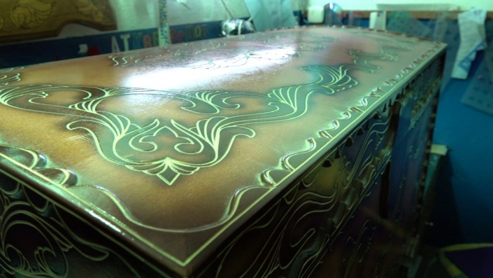 А в другой части клуба другие осужденные делают декоративные нарды, сундуки, шкатулки с зеркалами.