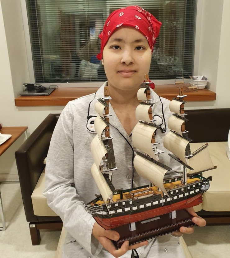 Сейчас Алина набирается сил перед очередным этапом химиотерапии и все свободное время проводит за рукоделием. Один из собранных корабликов она подарила своему лечащему врачу.