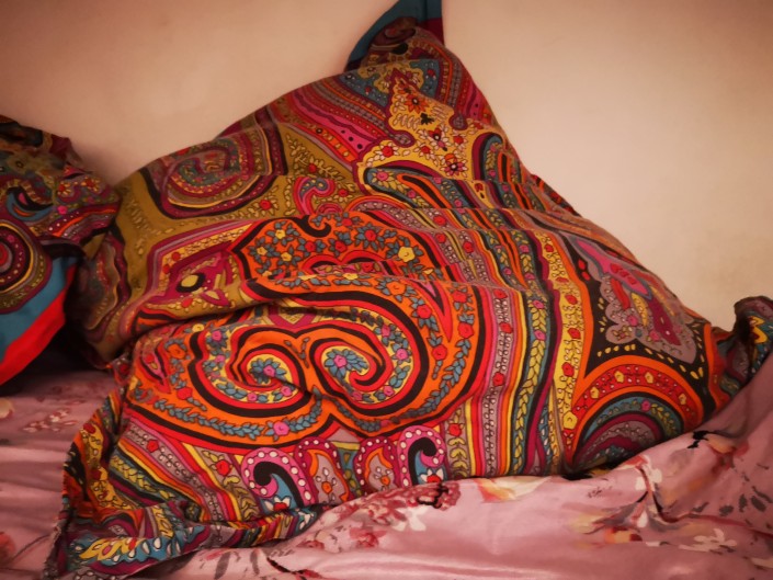 Исатай вместе с дочерью в своей комнате. 2019 год