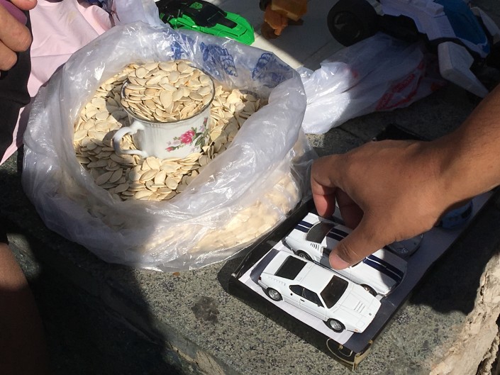 Тыквенные семечки, трансформеры, маленькая коллекция машинок и цветок - это ассортимент, которым торгует Светлана. "Стакан тыквенных семечек - 100 тенге, они очень полезные, их как лекарство можно использовать. А игрушки мне приносят продать, например, где-то у кого-то от внуков остались. Вот, например, трансформер бабушка одна дала продать", - поясняет женщина. Ей 52 года. Сама работает техничкой (два дня работает, два - отдыхает), получая 50 тысяч тенге, а в свободное время, как она сама говорит, она "реализатор".
