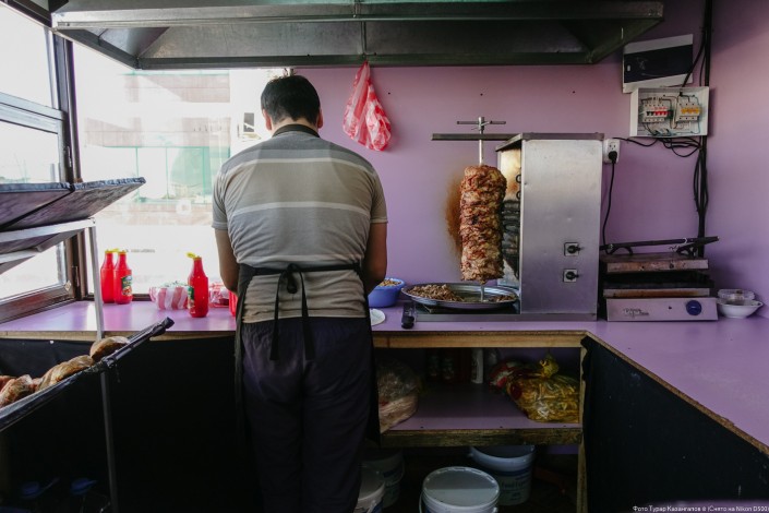 "Я первый начал готовить шаурму здесь. 11 октября 2015 года я продал первую шаурму в этом районе", - гордо рассказывает Бек ага.