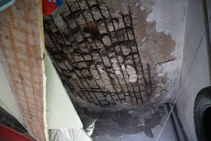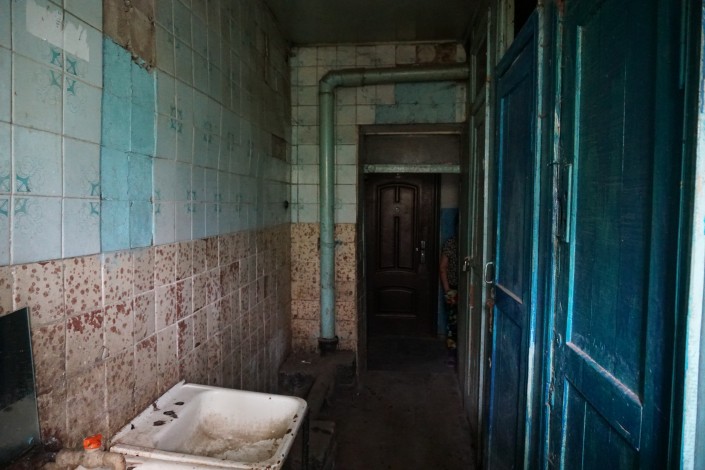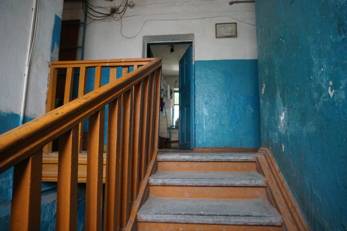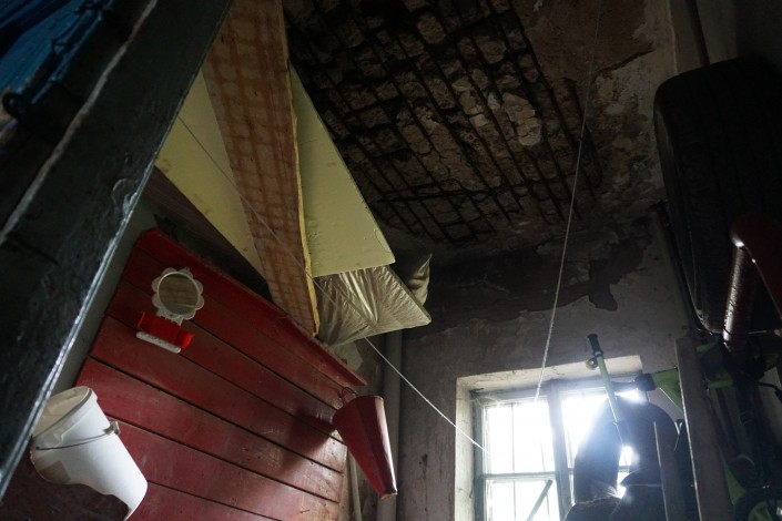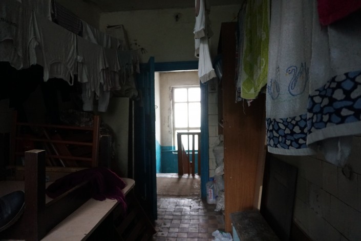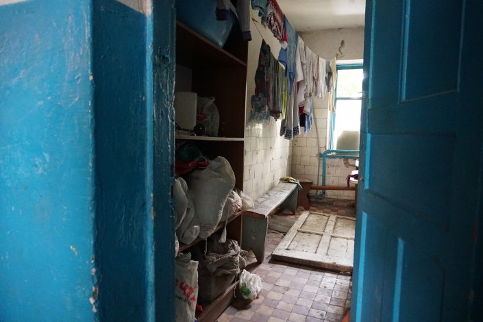 "Мы пол дверью закрыли, потому что уже все рушится, а у всех здесь маленькие дети бегают. Поставили дверь, чтобы дети не упали. Посмотрите, пол почти ни на чем не держится", - объясняют местные жители.