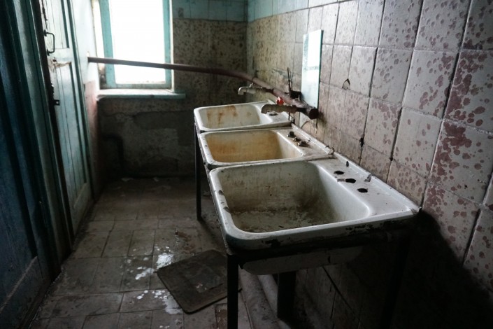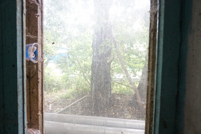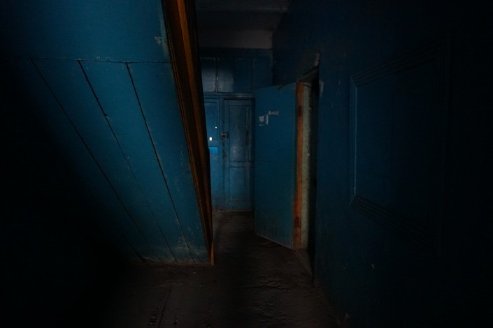 Ходят в туалет с фонариком. "Всю жизнь света не было. Но опасно тут сидеть, крыша может провалиться", - говорят местные. К слову сказать, первому этажу с туалетом повезло больше - в нем есть окно, и, соответственно, днем в нем не так темно.