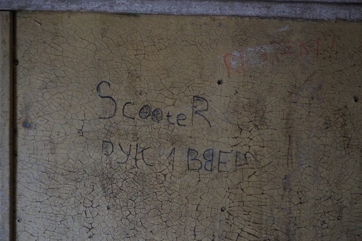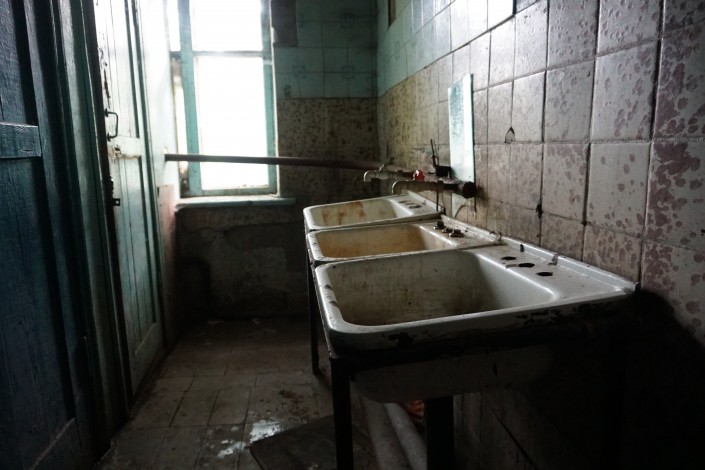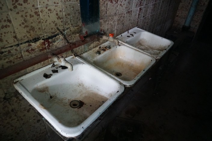 Две туалетные кабины расположены на первом этаже. Одна - для тех людей, которые живут внизу, другая - для тех, кто наверху. Из этических соображений мы не будем показывать состояние самих туалетов, отметив лишь, что в них почему-то нет света.