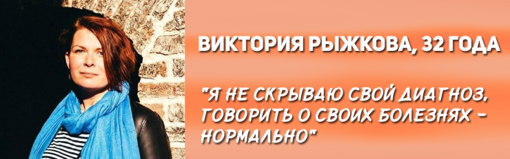"Меня зовут Виктория Рыжкова, я руководитель спецпроектов благотворительной организации "Ночлежка" (Санкт-Петербург, Россия). Я буду говорить от своего имени. Я не скрываю свои диагнозы: болезнь Вильсона-Коновалова, а также сопутствующая ей эндогенная депрессия. Я довольно много пишу об этом в соцсетях, рассказываю в интервью. Когда появились первые публикации, то друзья засыпали меня сообщениями: "Ты что, с ума сошла? Все подумают, что ты больная на голову!" Я им отвечала: "Ребята, а кто из нас нет?"