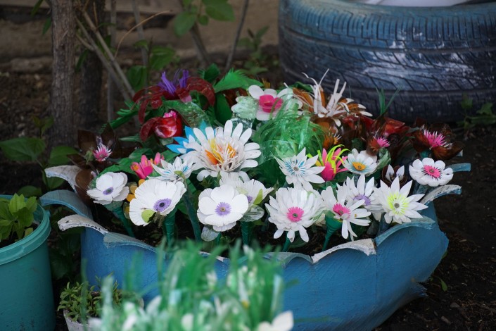 "Это все из пластиковых бутылок. Самые хорошие бутылки от "Сарыагаша", - говорит со знанием дела наша собеседница.