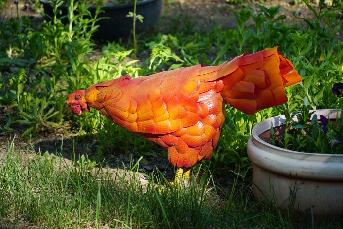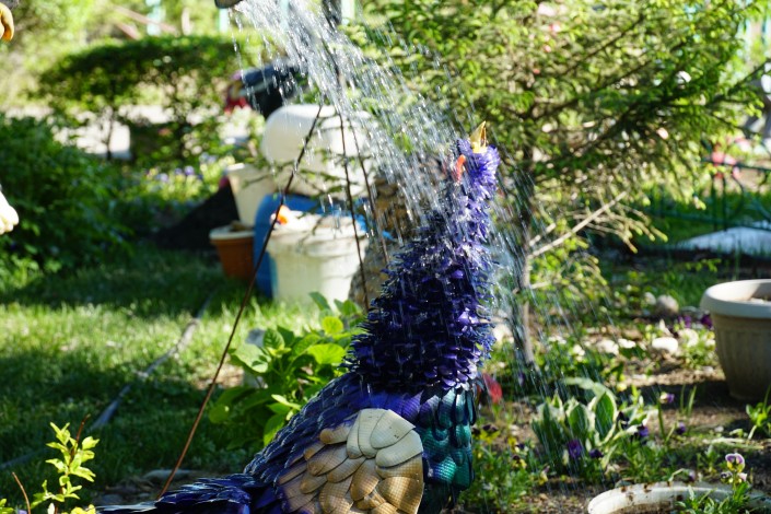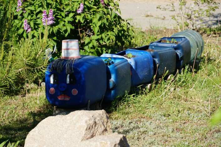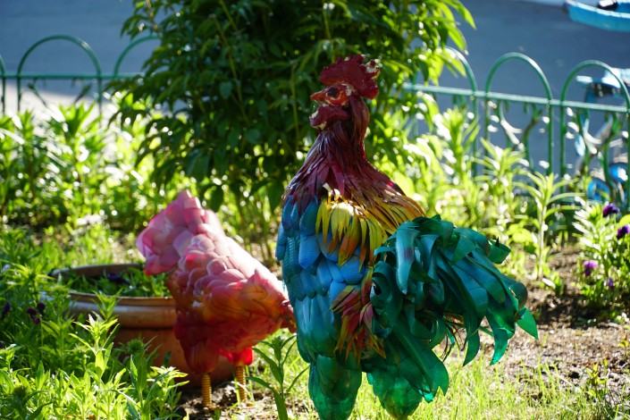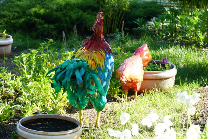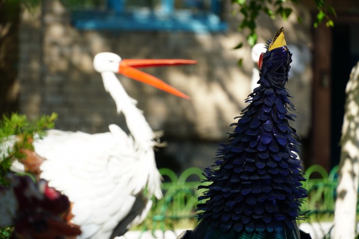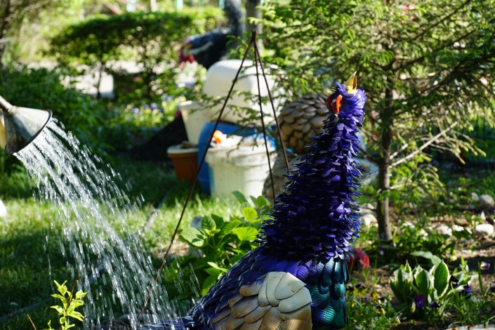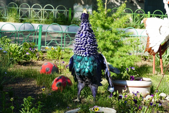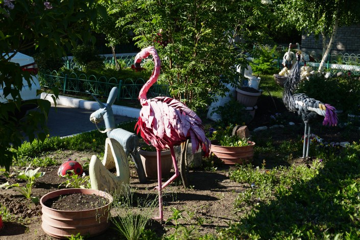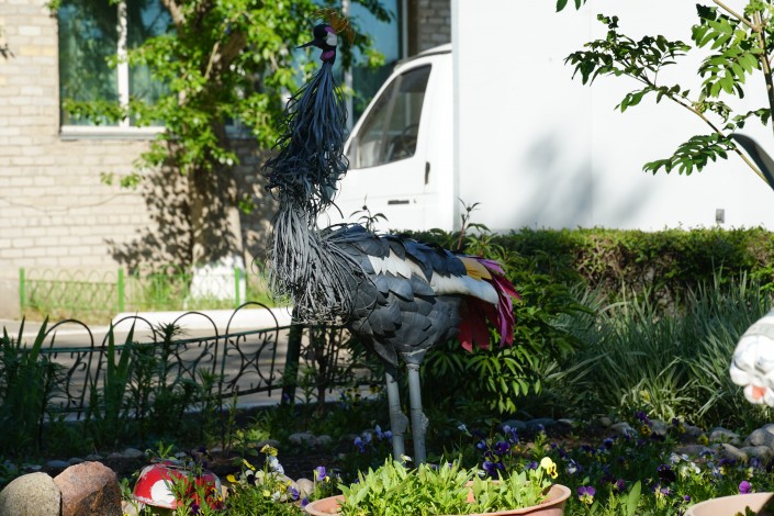 "Аистов долго делали. Здесь мы уже всем домом собирали белые бутылки из-под молока, кефира, чтобы не красить. То есть все остальные у нас крашеные, а вот у аистов натуральный цвет", - говорит Ольга Георгиевна.