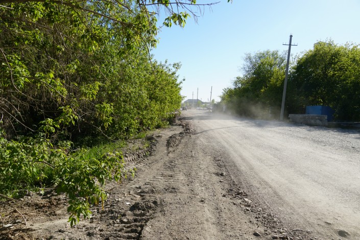 За уютными двухэтажками от проезжающих машин поднимается белая пыль и оседает толстым слоем на обуви прохожих.