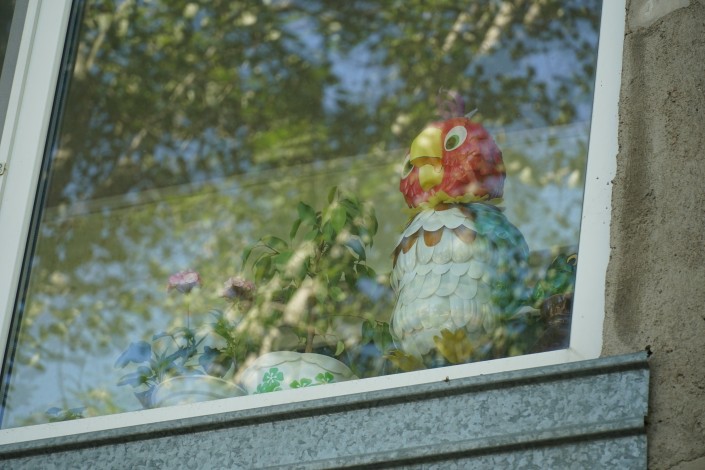"А это мой Кеша", - говорит Ольга Коняхина, заметив, как я снимаю попугая в окне.