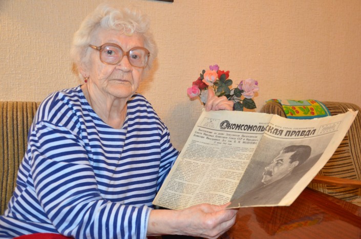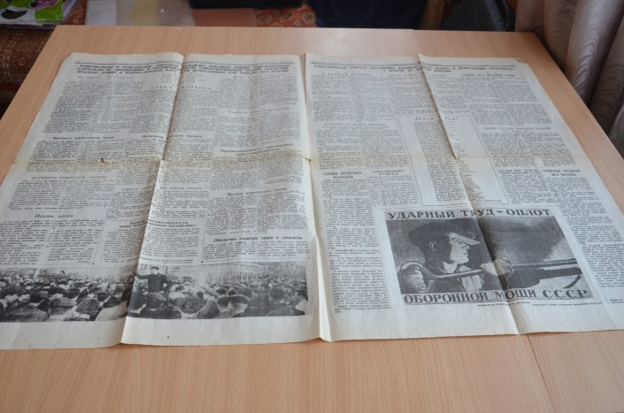 Сегодня ветеран труда и ВОВ Нина Ивановна Устинова бережно перелистывает страницы этой газеты и вспоминает то время. Когда началась война, Нине Устиновой было 15 лет. Ее семья жила в деревне Заключня Горьковской области, куда за год до начала военных действий был переведен ее отец и назначен председателем сельского совета. Как вспоминает Нина Ивановна, когда 22 июня верхом на лошади примчался дежурный из сельсовета и сообщил страшную весть о нападении Германии на Советский Союз, люди сначала не поверили, растерялись и лишь спустя минуты побежали к центральной усадьбе, откуда доносились первые сводки о начале войны.