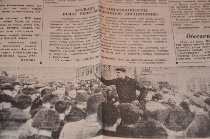 Под ними тексты с не менее громогласными заголовками: "За Родину, за Сталина!", "Ковать победу на своем посту", "Враг будет разбит", "В каникулы будем работать", "Своим трудом поможем родине" и тому подобное. Все это говорит о том, что, несмотря ни на что, целью было сохранить самое главное - веру, и ни в коем случае не отчаиваться.