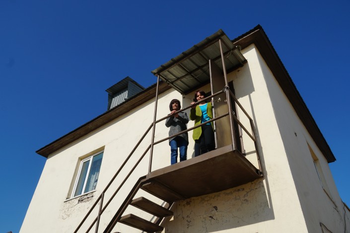 Чтобы попасть к тете Любе, нужно подняться по открытой железной лестнице.