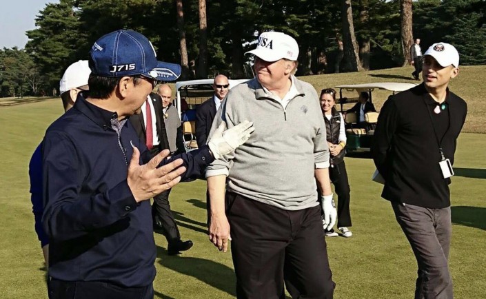 Нелепый инцидент произошел с премьер-министром Японии Синдзо Абэ во время игры в гольф с президентом США Дональдом Трампом, сообщает ABC News.