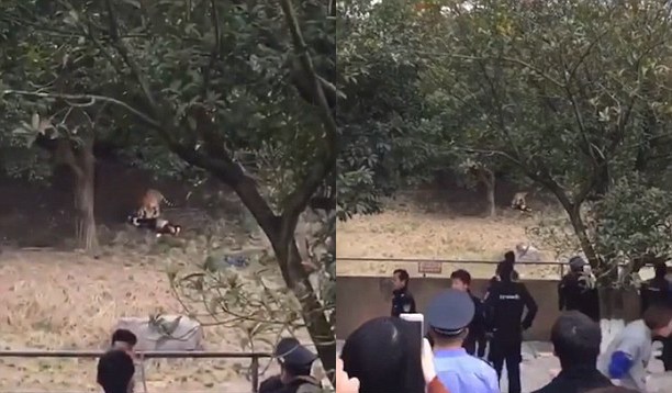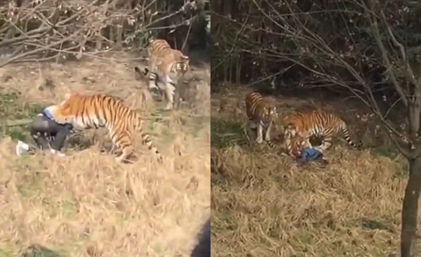 В Китае тигры растерзали мужчину на глазах у его жены и ребенка, а также многочисленных свидетелей, сообщает китайский телеканал CGTN.
