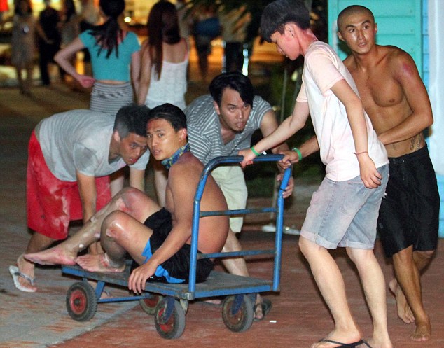 Инцидент произошел в субботу вечером, в 20.30 по местному времени. Над сценой, где танцевали около тысячи человек, был рассыпан неизвестный порошок, который вдруг воспламенился. После этого отдыхающие были мгновенно охвачены пламенем.