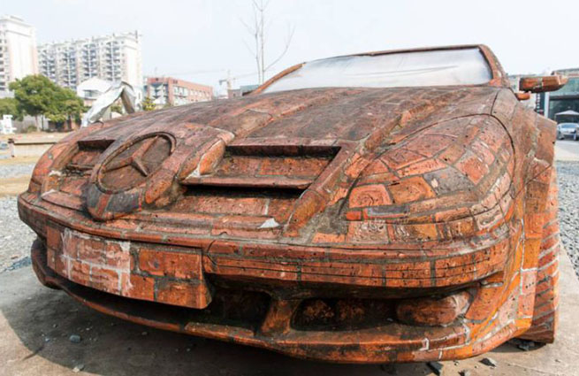 Арт-дизайнер Дай Юн из Сианя (город в провинции Шэньси) создал точную полноразмерную копию Mercedes, выполнив ее из кирпича и цемента, сообщает Lifenews.ru.