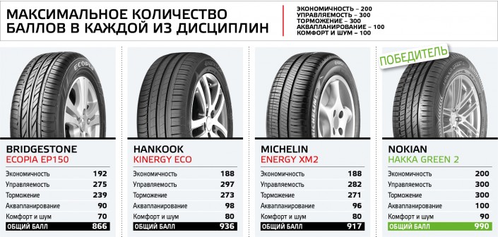 Победителем по баллам стал комплект Nokian Hakka Green 2.