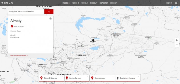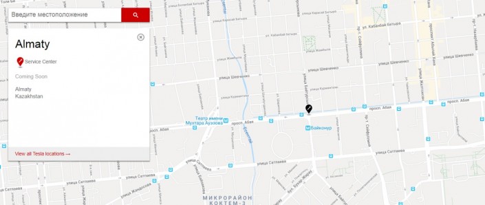Судя по карте на официальном сайте Tesla, сервисный центр будет располагаться на пересечении улицы Байтурсынова и проспекта Абая.