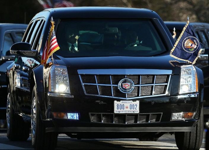 Автомобиль марки Cadillac разработан компанией General Motors совместно с американскими спецслужбами. Он будет снабжен оружием, в том числе пушкой со слезоточивым газом и дробовиком. На машине установят пуленепробиваемые окна и двери, которые смогут выдерживать химические и биологические атаки.