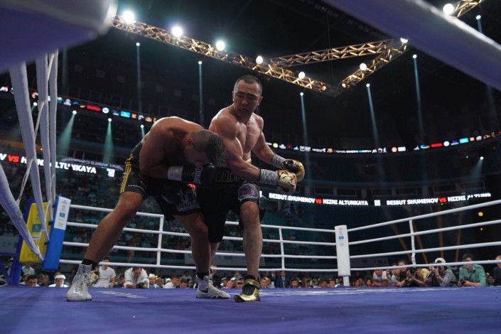 Только что в Астане на "Барыс Арене" завершился главный бой вечера бокса, в котором встречались казахстанец Бейбут Шуменов и Хизни Алтункая из Турции, передает корреспондент Vesti.kz. На кону 12-раундового поединка стоял титул чемпиона мира WBA в первом тяжелом весе.