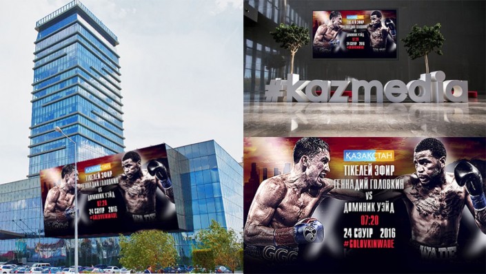 "Телерадиокорпорация "Казахстан" предоставляет уникальную возможность посмотреть в прямом эфире бой нашего земляка Геннадия Головкина и американца Доминика Уэйда на большом лед-экране, расположенного в холле "Қазмедиа орталығы" на первом этаже. Также поединок боксеров будет транслироваться на наружных экранах "Қазмедиа орталығы", - говорится в сообщении.