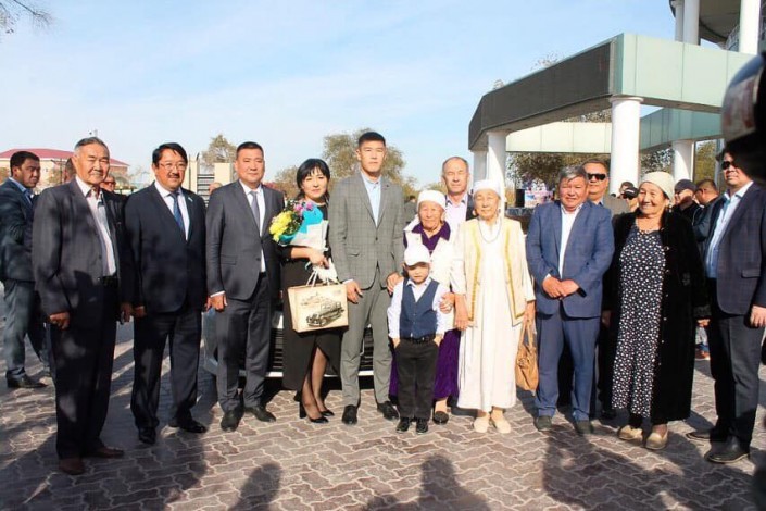 Новый чемпион мира из Мангистауской области получил в подарок Toyota Camry XV70 белого цвета. Спортсмена поздравил аким Жанаозена Максат Ибагаров.
