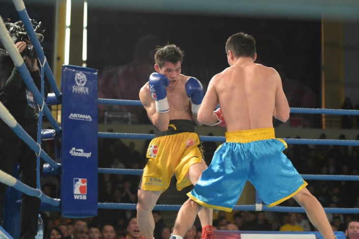 В первом бою встречи на ринг вышли Темиртас Жусупов и Хе Цзюньцзюнь, в весе до 49 килограммов. По итогам пяти раундов победу одержал казахстанский боксер.