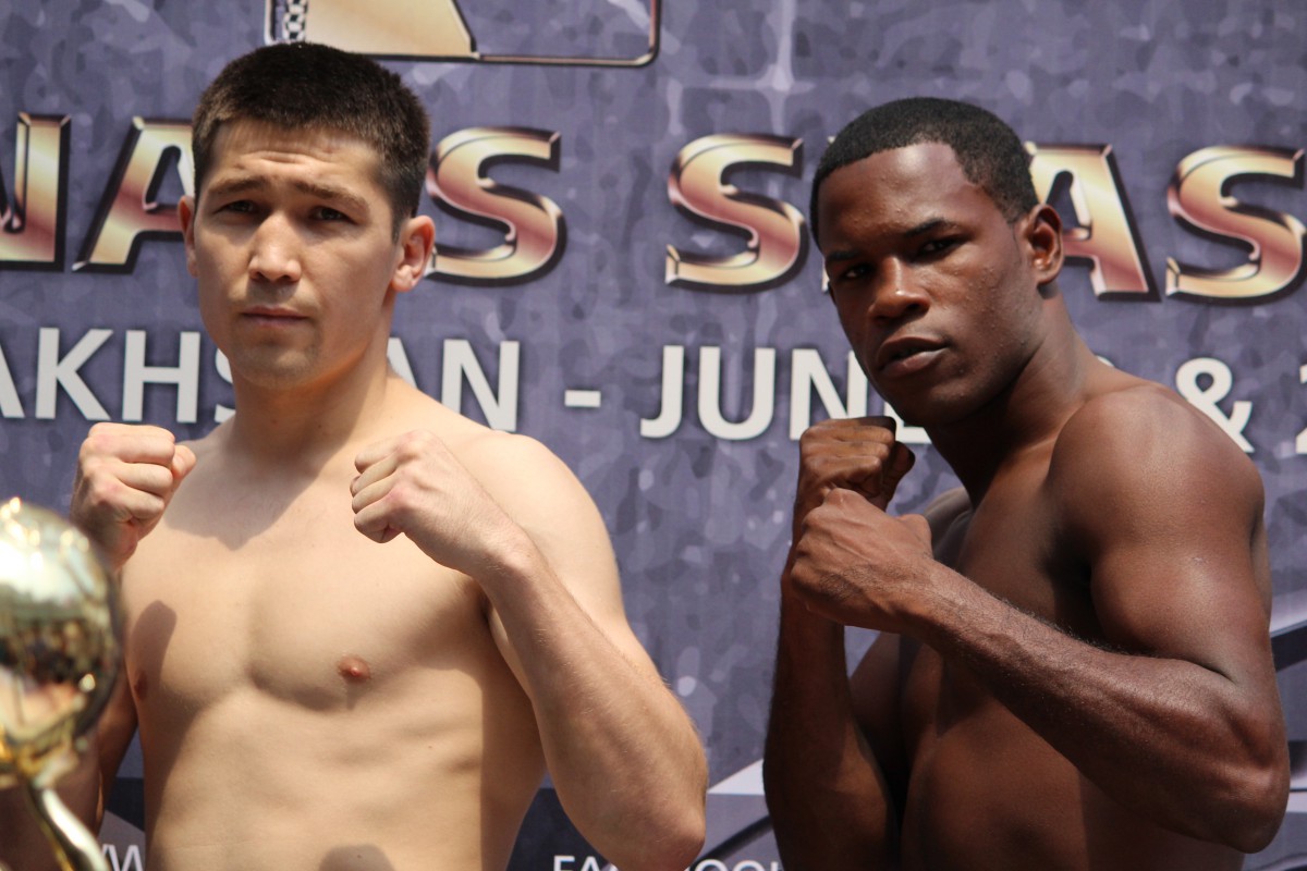 Темиртас Жусупов и Йоанис Аргилагос на процедуре взвешивания. © Vesti.kz