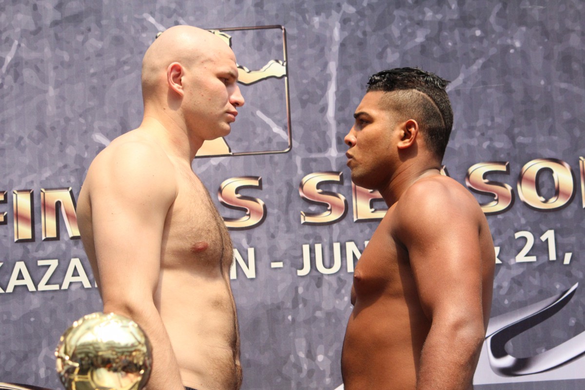 Второй день финальной серии открывал поединок между Олжасом Саттыбаевым и Йосвани Вейтиа (в весе до 52 килограммов). Победа в бою досталась казахстанцу.