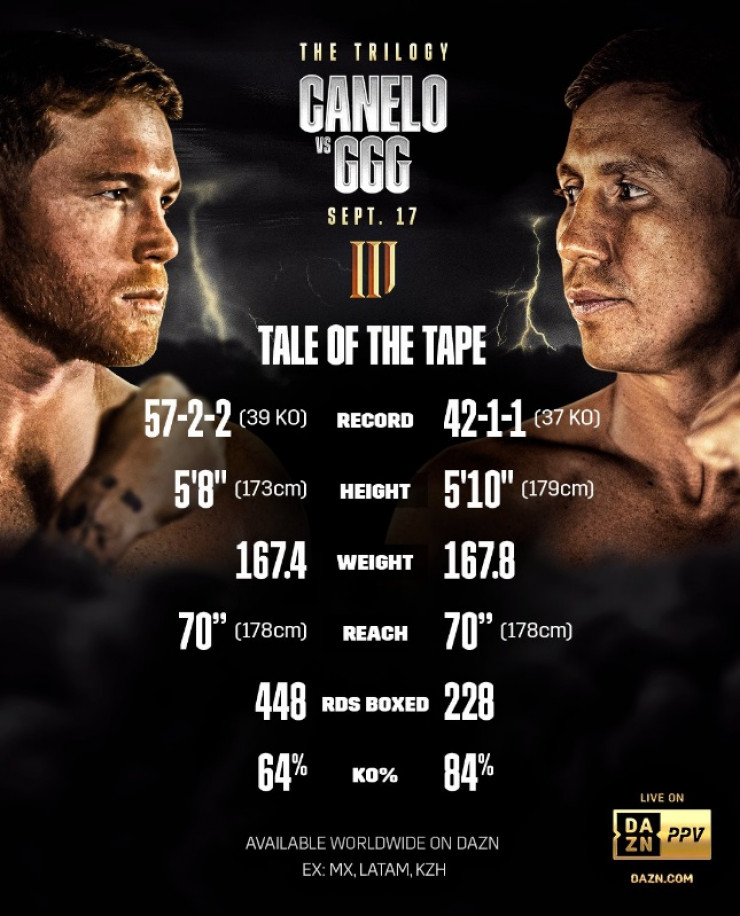 Отметим, что третий бой проходит на T-Mоbile Arena, где состоялись два предыдущих поединка. В 2017 году была зафиксирована ничья, а в 2018-м победил Канело.