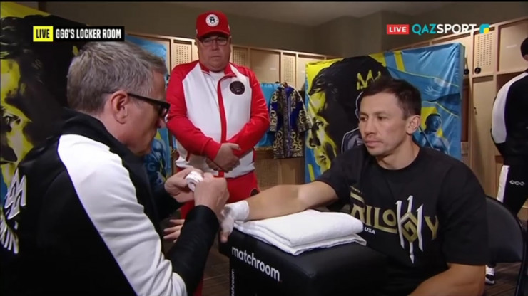 Показали раздевалку Геннадия Головкина, но не показали, что происходит внутри. -