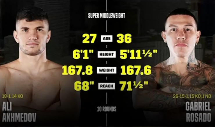 Совсем скоро бой казахстанца Али Ахмедова против Габриэля Росадо. Это соглавный поединок в рамках сегодняшнего шоу.