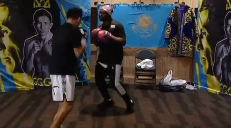 Джонатан Бэнкс (тренер Али Ахмедова и Геннадия Головкина) просит казахстанца сосредоточиться на сопернике.