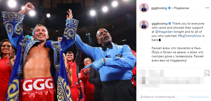 "Рахмет всем, кто прилетел в Нью-Йорк и болел на арене, и всем, кто смотрел дома у телевизора. Рахмет всем вам за поддержку!" - написал спортсмен на своей странице в Instagram.