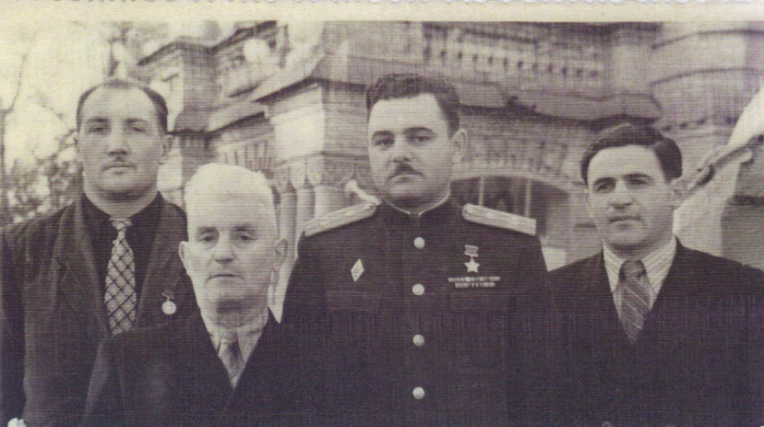 Сидней Львович со своими воспитанниками, героями Советского Союза В.Карповым, М.Мешем, Н.Марченко. © isrageo.com