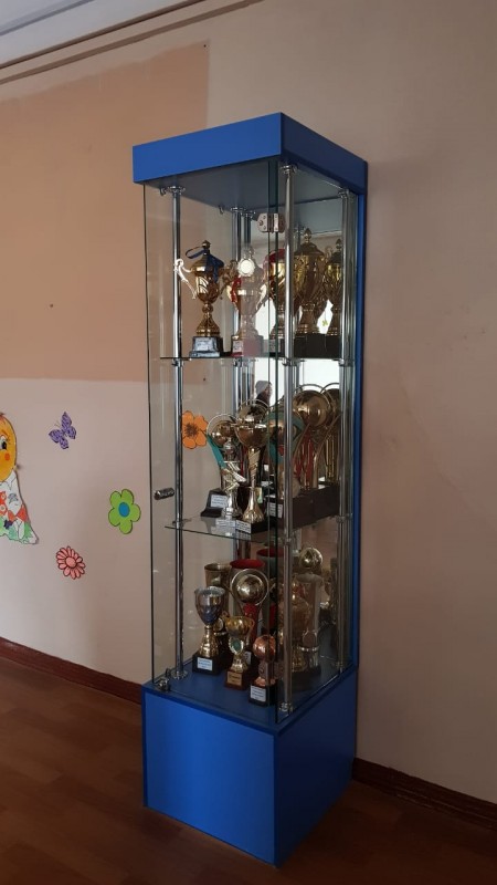 Заместитель директора по учебной части Венера Линкер рассказала, что эту школу Головкин окончил ровно 20 лет назад. В школе уже много лет открыт уголок чемпиона - спортсмены из числа учеников школы приносят сюда свои награды и посвящают их боксеру-земляку.
