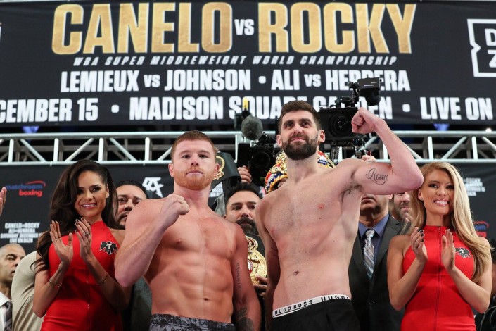 В США состоялись взвешивание и дуэль взглядов чемпиона мира в среднем весе по версиям WBC и WBA мексиканца Сауля "Канело" Альвареса и чемпиона WBA британца Рокки Филдинга, сообщает спортивный портал Vesti.kz.