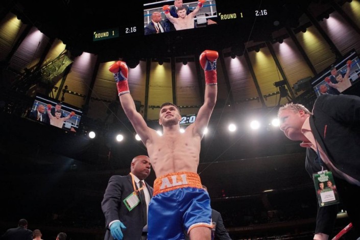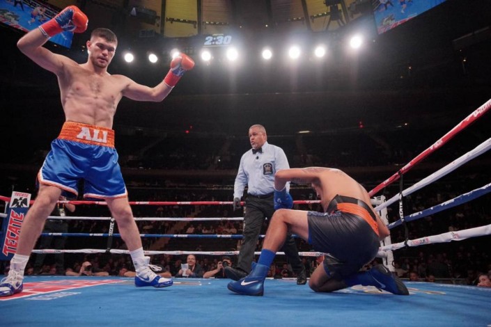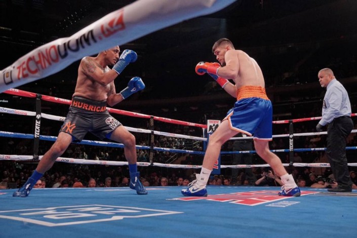 Их поединок стал пятым по счету в андеркарте вечера бокса на арене Madison Square Garden в Нью-Йорке. В главном же событии шоу казахстанец Геннадий Головкин и украинец Сергей Деревянченко разыграют вакантные титулы чемпиона мира в среднем весе по версиям IBF и IBO.