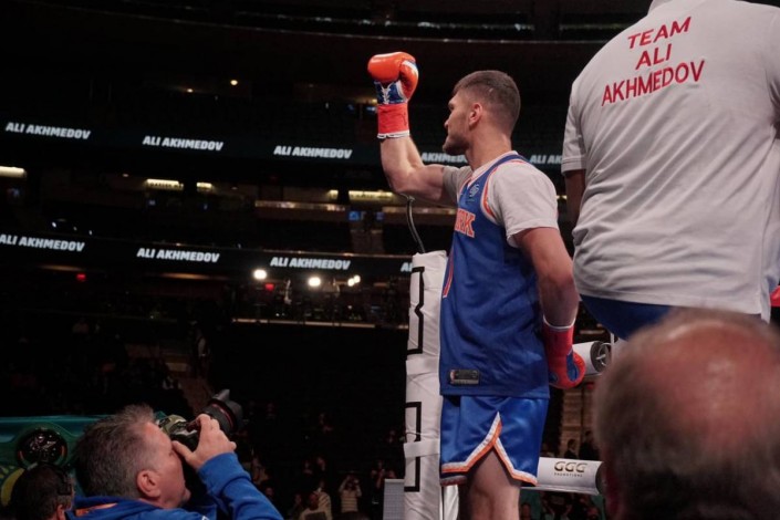Бой Ахмедов - Эрнандес был рассчитан на 12 раундов, но завершился уже на 44-й секунде первого. На этот бой казахстанец вышел в форме хоккейного клуба "Нью-Йорк Рейнджерс", который домашние матчи играет на MSG.
